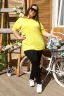 Костюм состоит из футболки и брюк. Футболка прямого силуэта, с округлой горловиной, с удлиненной спинкой, с разрезами в нижней части боковых швов. На полочке расположены вставки из отделочного полотна. Спинка с кокеткой. Рукав короткий, обработанный эластичным манжетом. Горловина обработана эластичной обтачкой. Брюки на поясе, с боковыми карманами. В верхней части передних половинок по шву притачивания пояса расположены складки. На моделях 48 и 52 размеры
