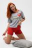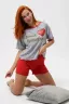 Весёлая, лёгкая пижамка "сладкая клубничка". Очень свободный крой, спущенная пройма. Может использоваться как домашний костюм. Футболка х/б 50%, ПЭ 50%; шорты х/б 100%
