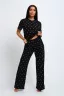 Пижама женская футболка и брюки. Брюки прямого кроя, с карманами. Футболка с коротким рукавом.