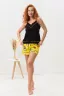 Комплект состоит из майки и шорт. Майка на тонких бретелях, с V-образной горловиной на полочке, с отделочным кантом по горловине и низу. Горловина и бретели обработаны бейкой из основного полотна. Шорты прямые, короткие, с манжетом и отделочным кантом, на резинке.