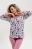 Красивая, мягкая и уютная хлопковая пижама согреет вас холодными зимними вечерами! Пижама-костюм, состоящая из прямых брюк свободной формы и легкого жакета-рубашки на центральную застежку на пуговицы с длинным рукавом. Воротник английский отложной с контрастным кантом по краю. Брюки на поясе с резинкой и блестящей тесьмой, низ с отрезной манжетой с кантом. Пижама не стесняет движений, в ней приятно спать и заниматься домашними делами. Комплект можно купить в подарок символ нового года родным и близким!