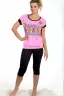 Женская пижама с бриджами и футболкой с коротким рукавом - идеальный баланс стиля и уюта. Модель выполнена из высококачественного кулирного волокна. Комфортный фасон и аккуратный дизайн