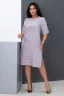 Женское летнее платье прямого силуэта. Данная модель с округлой горловиной, рукав чуть выше локтя, декорирован планкой с пуговицей, легкое и удлиненное, имеется разрез сбоку снизу.
