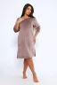 Платье женское средней длины свободного кроя из мягкого велюра. Рукав средней длины, по бокам разрезы, горловина обработана бейкой из основной ткани. Платье отлично подойдет для дома и отдыха.