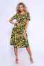 Платье полуприлегающего силуэта с короткими рукавами, отрезное по линии талии, нижняя часть изделия свободная, расклешенная. Полочка с имитацией застежки на пуговицы.