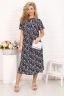 Женское платье из легкого штапельного полотна, плинтованного рисунком в мелкий цветочек. Модель длиной миди, отрезная по линии талии, с напускным верхом и коротким цельнокроеным рукавом. В поясе мягкая резинка. На округлой горловине небольшой вертикальный разрез на завязках, идеальный вариант для комфортного женственного образа на каждый день. Универсальное платье больших размеров подойдет полным девушкам и солидным леди на любой случай - это и деловое платье для офиса, и повседневное платье для прогулок, и вечернее платье для торжественного мероприятия, и нарядное платье на выход, и легкое осеннее платье под куртку.