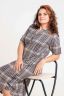 Люблю домашний трикотаж, дома не хожу в халате. Платье неплохое, буду носить. Наконец, появилась расцветка в клеточку, я выбрала потемнее. С ивановским трикотажем остается проблема дизайна и принтов на тканях - сто лет не меняется стиль, а если меняется, то на следу.щие сто лет. Приходится часами перебирать каталог в поисках приличных вещей, потому что принты жуткие, краски немодные, модели однообразные, покрой один и тот же. А чем больше размер, тем крупнее и пестрее рисунок! Вы же тем самым воспитываете дурной вкус у населения!