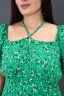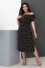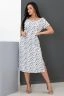 Платье женское полуприталенного силуэта, короткий рукав, округлая горловина с декоративными завязками, на передней полочке разрез снизу. Вид застежки скрытая молния сбоку. Легкое и удобное.