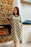 Платье женское с V-образным вырезом, рукава с открытым плечом, по низу рукавов планка, по низу изделия разрезы.