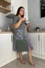 Платье женское полуприлегающего силуэта с отложным воротником застежкой на пуговицы сверху донизу. По груди кокетки, один карман в боковом шве, по низу разрезы в боковых швах.