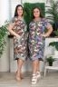 Платье женское полуприлегающего силуэта. На полочке и спинке рельефы. Вырез Y-образный. Низ платья, рукава и срез входа в карман обработаны обтачками из ткани-компаньона "полоса"
