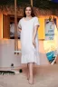 Платье женское, свободное, расширенное к низу, на подкладке. Рукав реглан, короткий. Горловина округлая, внизу платья широкая рюша, в боковых швах внутренние карманы.