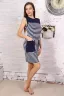 Платье из вискозы в полоску. Отделка - кокетка и накладные карманы из темно-синей ткани. Вырез горловины и пройма отделаны кантом