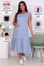 Сарафан женский расширенного силуэта с воланом по низу. Полочка изделия с нагрудными выточками. Горловина изделия округлой формы. Горловина и проймы обработаны окантовкой. Низ сарафана подогнут.