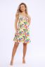 Ткань мягкая, как у плотной футболки. Симпатичный принт. Минус: и передняя, и задняя части сорочки не скроены из цельного полотна. Передняя из трех частей, задняя из двух. Такое надо указывать в описании, т. к. речь о нижнем белье. Передние швы - на линии груди. Это мешает. Если перевернуть сорочку "задом на перед", будет удобнее. Забавно. Первый раз с таким встречаюсь.