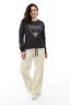 Свитшот свободного силуэта, прямого кроя. На переде печать с серебром, которое будет эффектно искриться на солнце. Линия плеча спущена. Манжеты из кашкорсе подобраны в тон ткани. Низ изделия регулируется шнуром.