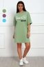 Туника женская прямого силуэта. Низ изделия прямой. Длинна выше колена, плечо спущенное, рукав короткий. Горловина круглой формы, обработана планкой с отделочной строчкой по шву притачивания. Принт (шелкография) располагается по центру переда.