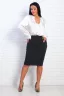 Модель прилегающего прямого силуэта, длиной чуть ниже колена, пояс на резинке. Юбка изготовлена из трикотажной ткани креп, которая приятна к телу, не мнётся, не даёт усадку. В замерах указан обхват бедер без растяжки, ткань тянется хорошо.